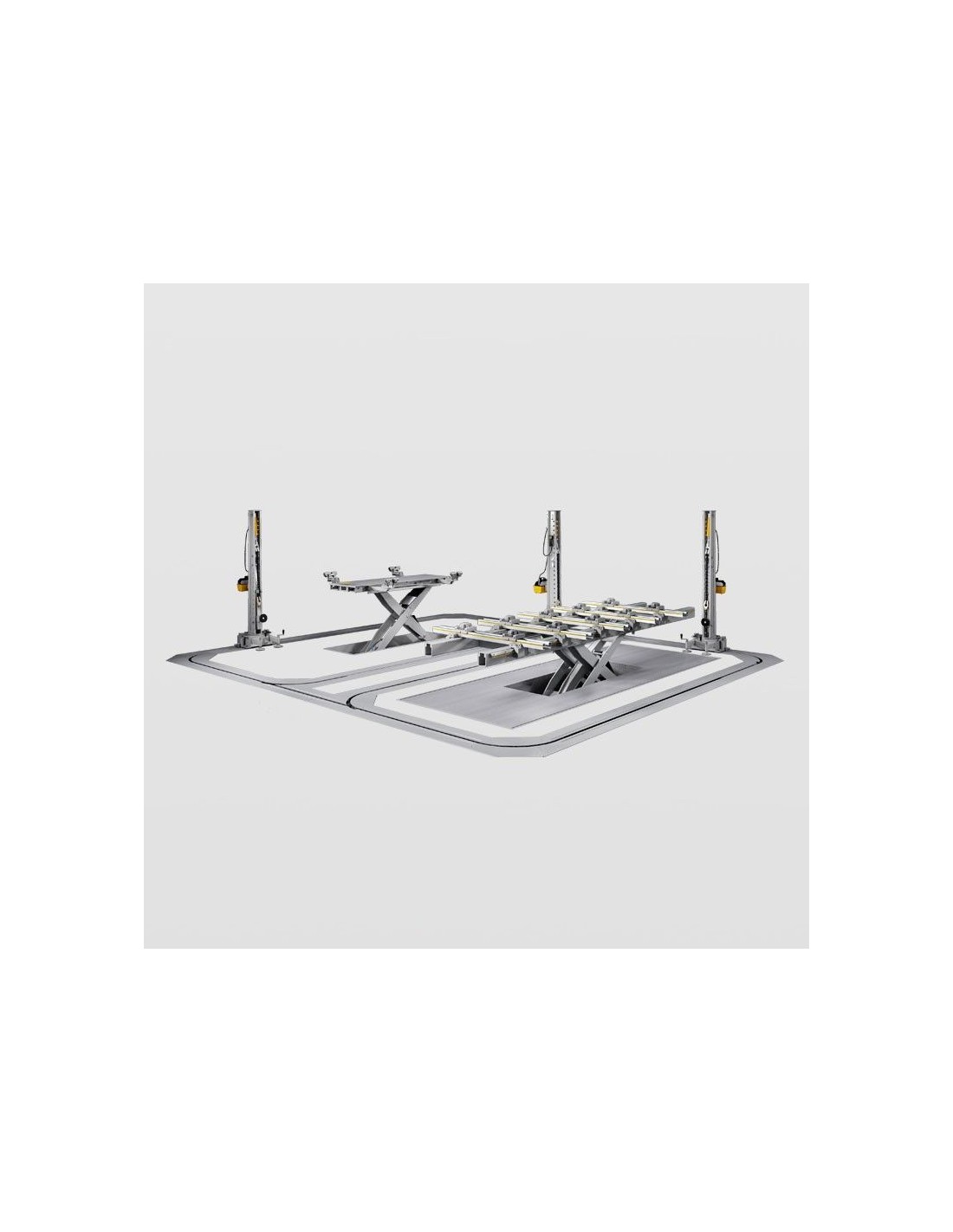 Los anillos permiten hacer múltiples tiros en caso de accidentes graves o no, asegurando una reparación del chasis del coche realizada de forma profesional. Cada anillo puede ser instalado con bancos de enderezamiento y elevación equipados de dima universal.
