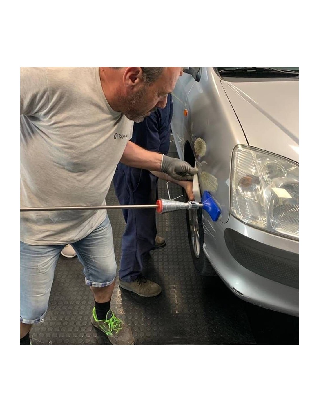 El PULL UP! El sistema de reparación es la última innovación de Martech Car, que utiliza ventosas, pegamento y martillos de inercia para producir reparaciones perfectas del panel. Adecuado tanto para acero como para aluminio, el enderezado es realizado desde el exterior del panel o revestimiento.