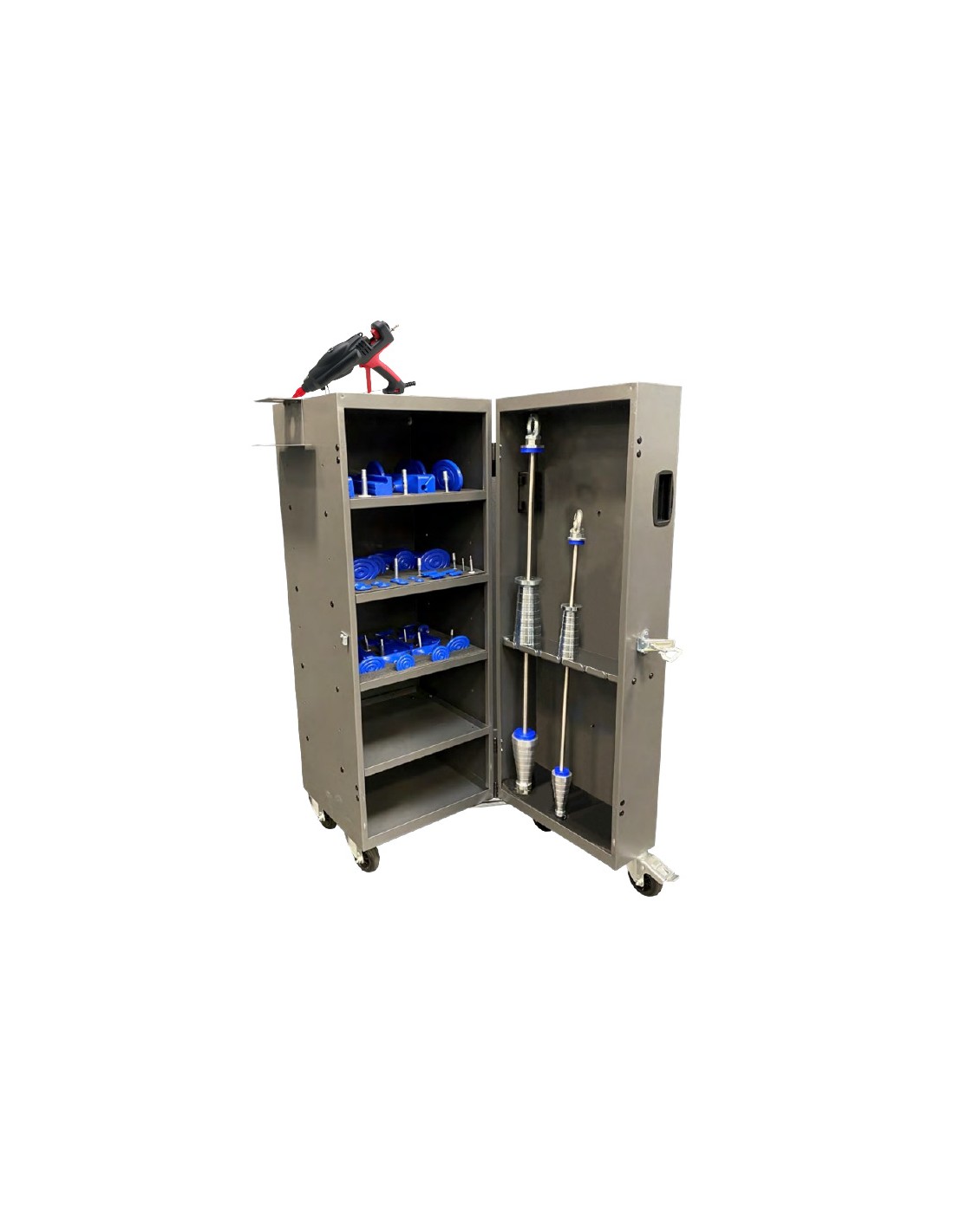 Sistema de desabollado en frío mediante adhesivo. Permite realizar reparaciones de alta colisión sin necesidad de quitar pintura.